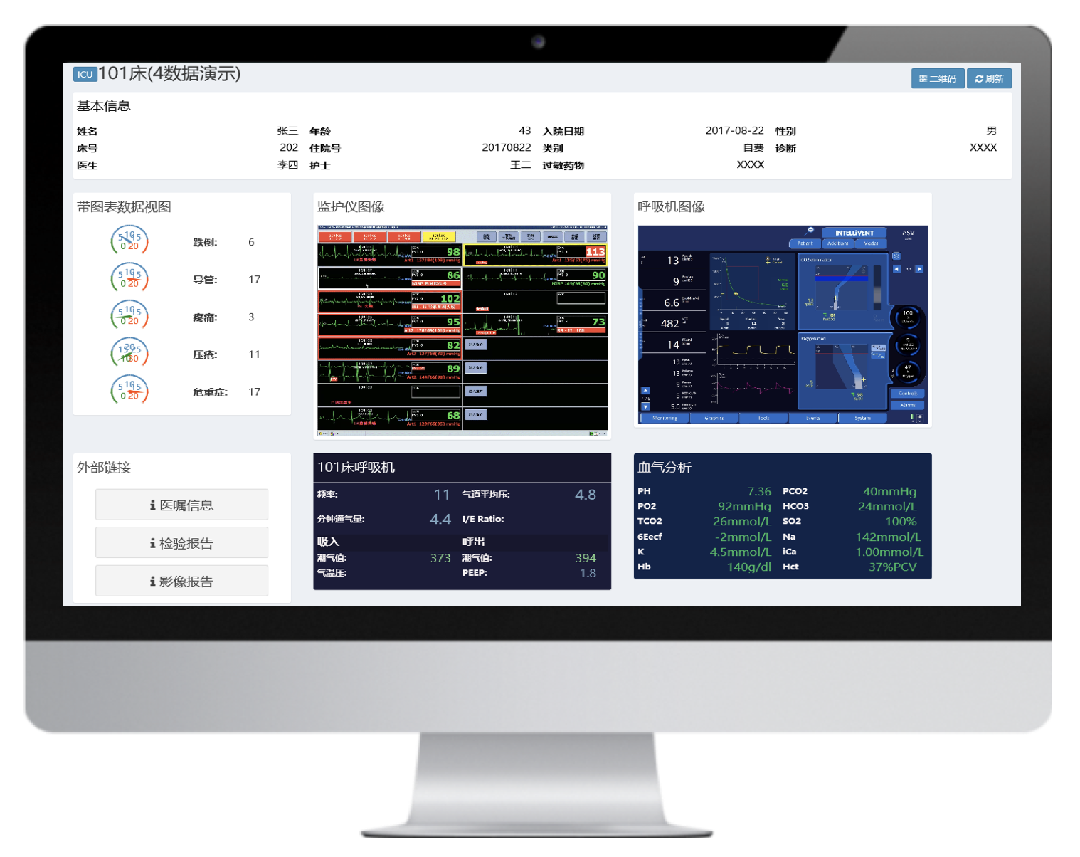 實時呈現病人體征參數、變化趨勢,診療設備參數,同時接入醫囑、檢驗結果數據,一體化呈現存儲和回溯,方便醫護急救、會診、查房